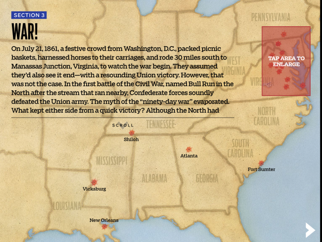 Kids will learn all about the Civil War as they discover the difference of opinion over slavery and states’ rights, roam the battlefields with the soldiers, and meet the most famous figures of the period in this interactive reading app.