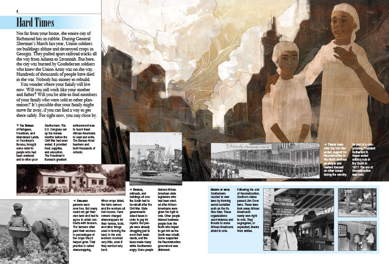 To reconstruct means to construct again, and that was just what was needed after the Civil War. The United States was a country torn apart at the seams. Ready to find out what it takes to heal a nation? For kids studying Reconstruction, Kids Discover Postwar Change and Growth carefully tweezes apart the competing interests and policies in the post-war period. First, kids get an overview of Andrew Johnson’s policies, the Southern response, and Congress’s response to the response, which included the 14th and 15th Amendments. Then they can read about the effect of these policies on the formerly-enslaved population in the South.