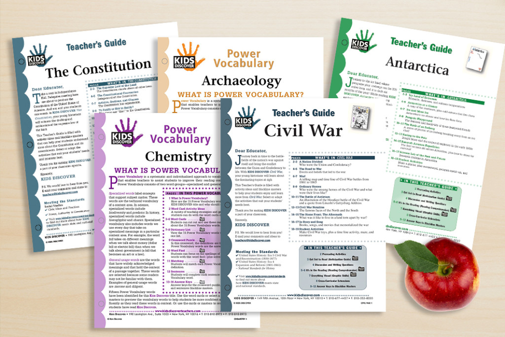 12-page Teacher Guides and 16-Page Power Vocabulary packets for every issue and online Unit of Kids Discover.